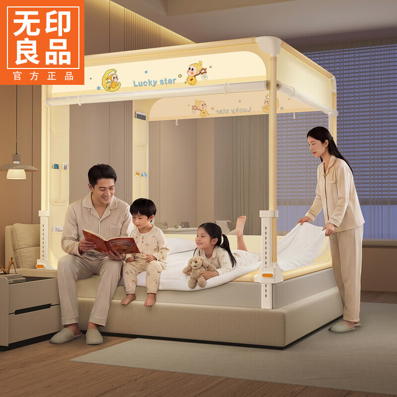 无印良品a类婴儿防摔蚊帐1.8x2米家用一体式免安装床围栏全包围三开门蚊帐 Lucky星宝【A类品质 防蚊又防摔】 180cm*200cm*170cm 擎天柱大脚板支架【真护栏级防摔】
