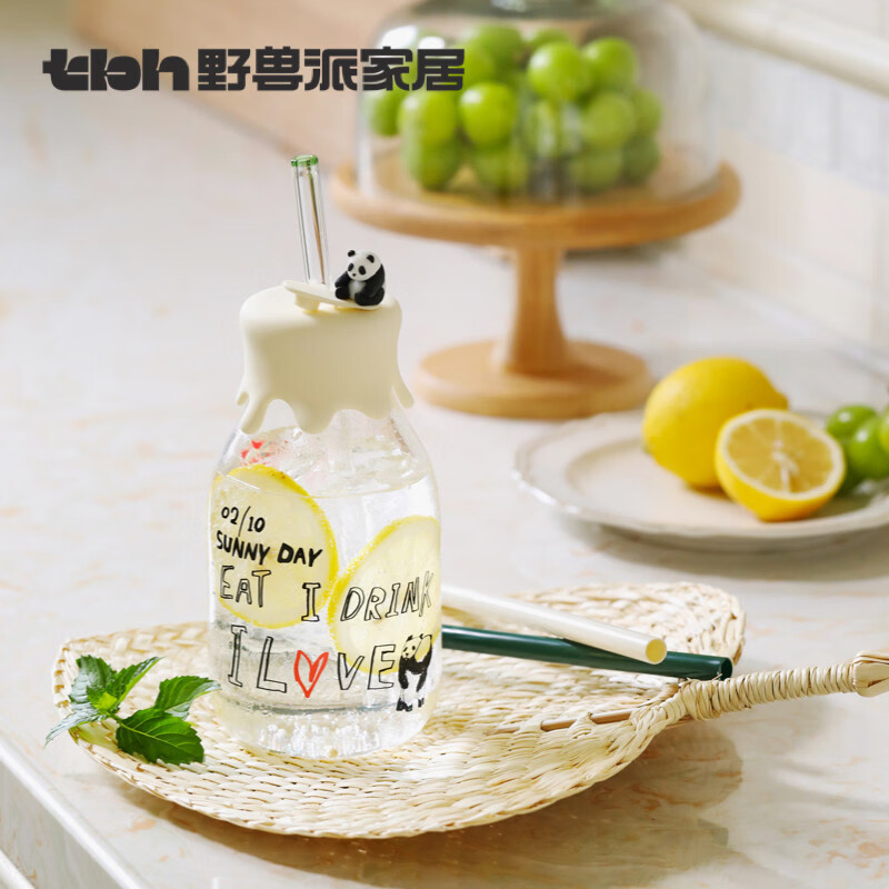 野兽派家居熊猫嘭嘭玻璃奶瓶吸管杯办公室喝水杯礼盒装送人 熊猫嘭嘭 玻璃奶瓶吸管杯 690ml 1只