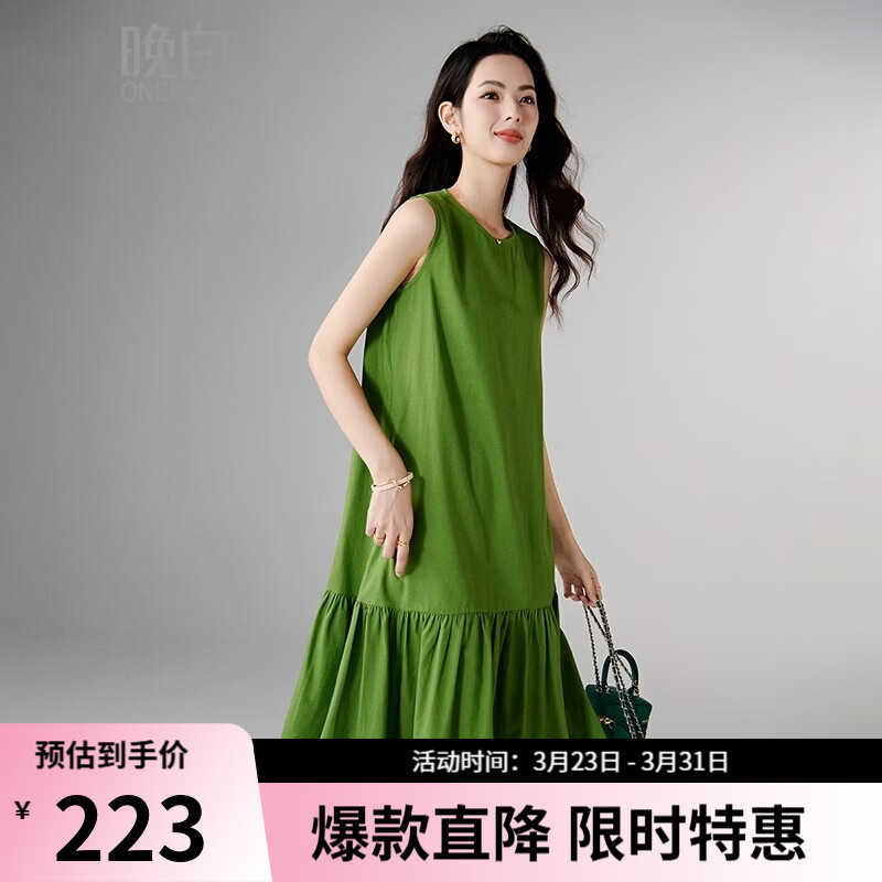 晚白【新品】2026年春款时尚棉麻裙子宽松舒适休闲无袖连衣裙 绿色 S