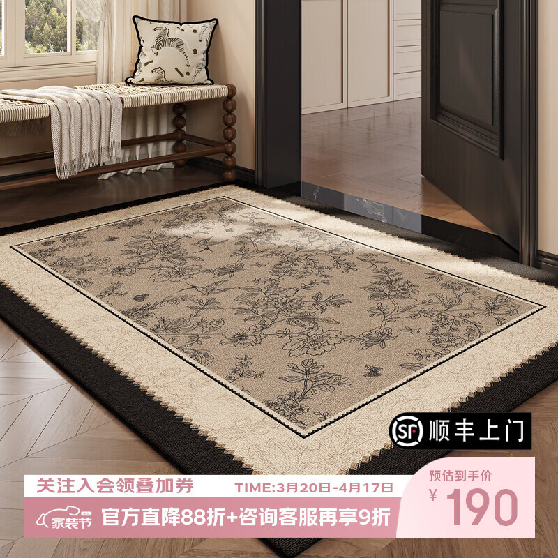 像素入户门地垫法式复古2026新款中古风免洗可擦进门脚垫门口防滑地毯 墨色玫瑰-26379 120*180cm【升级四防 高级法尔曼绒】