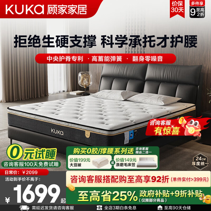 顾家家居(KUKA)撑腰系列天然乳胶床垫 三区护脊独立筒弹簧 软硬适中席梦思床垫子 撑腰白金1号-M1218L 专利护脊1.8*2.0M