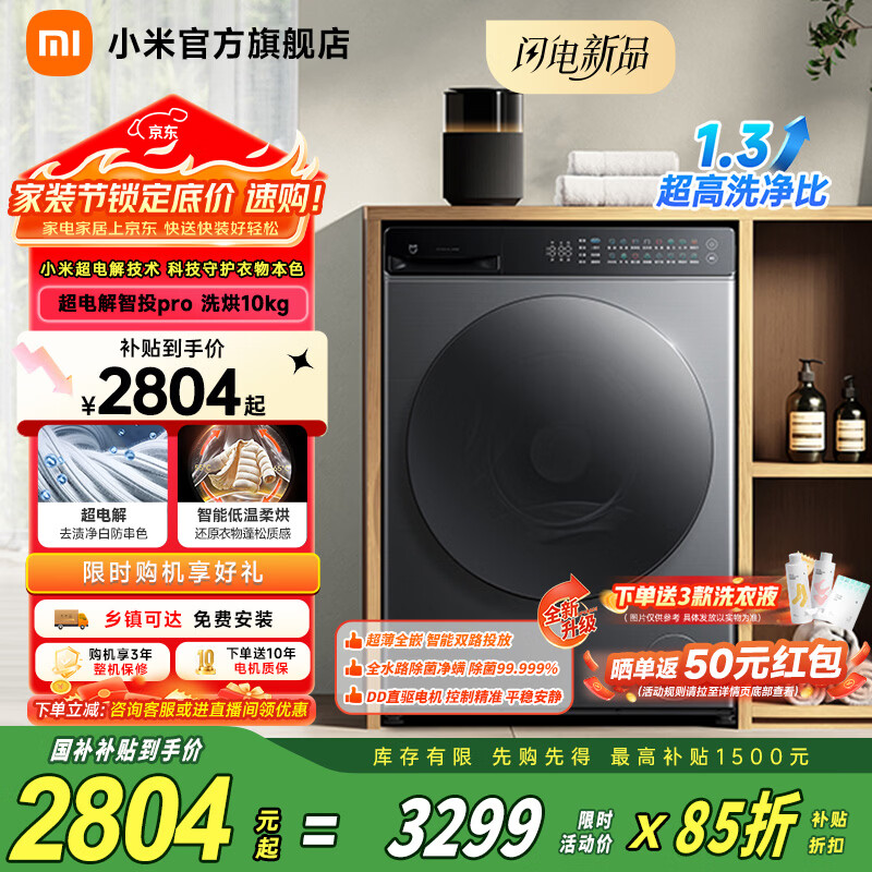 小米(MI)【26年新品超电解】米家10公斤滚筒洗衣机pro去渍净白 双路智能投放洗烘一体 蓬松羽绒空气洗