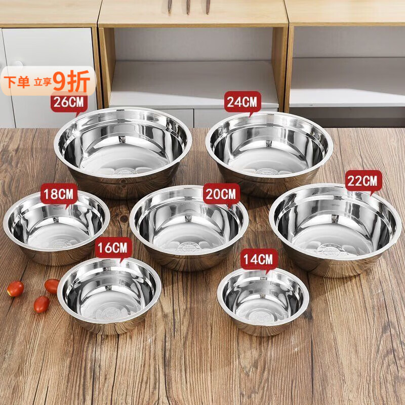 泰禧阁304不锈钢盆加厚无磁多用盆食堂汤碗家用泡面碗饭盆碗汤盆打蛋盆 食品级不锈钢盆 14+16+18CM三件套