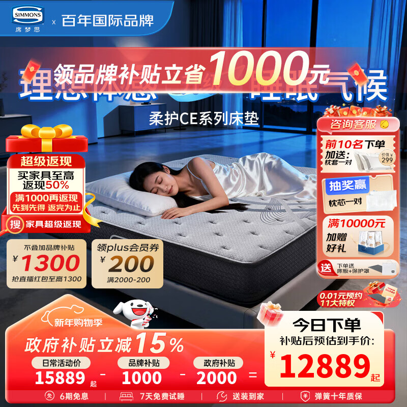 席梦思天然乳胶床垫 银离子抑菌AIR呼吸棉双人床垫1.8x2米 柔护CE Air 【柔护CE Air】【新品升级】 1800*2000