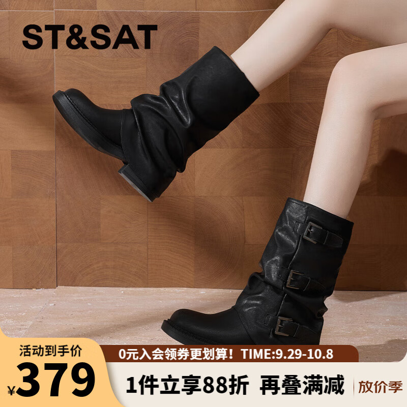 星期六时尚厚底增高中筒靴2025冬季新款百搭女靴MTSSD4116C4E 黑色 35
