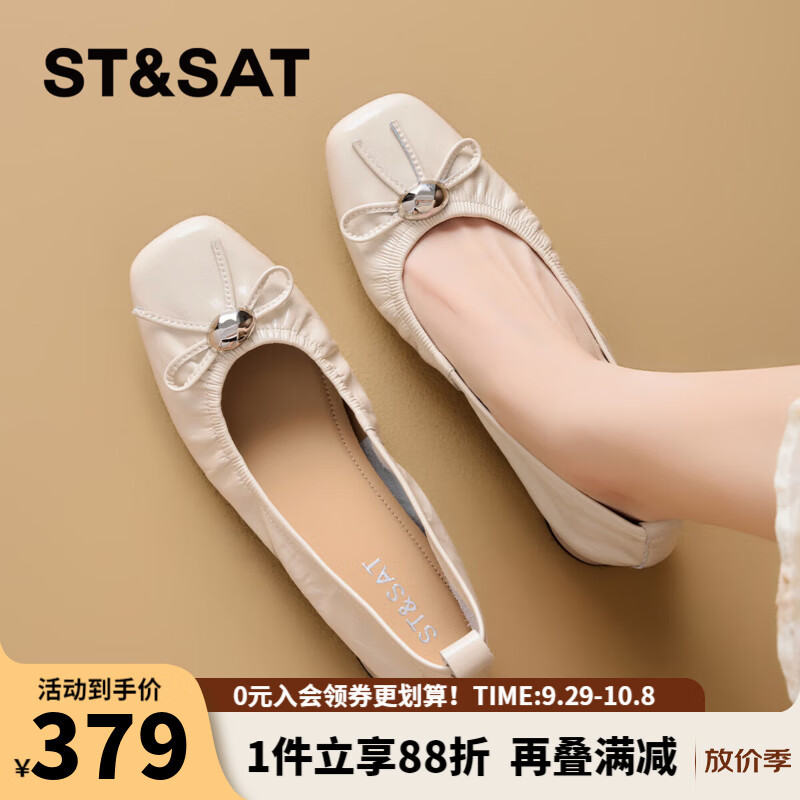 星期六时尚蝴蝶结女单鞋2025夏季新款百搭通勤女鞋MTSSD2111WEZ 米白 35