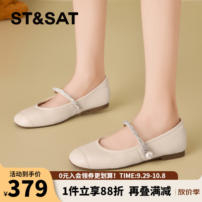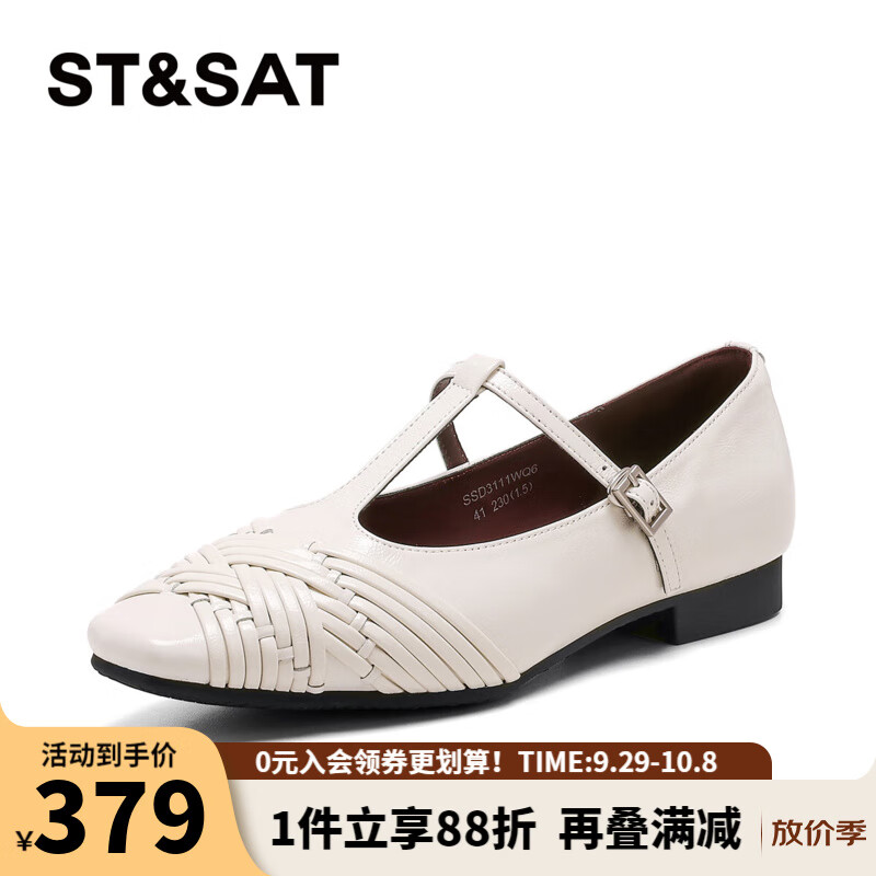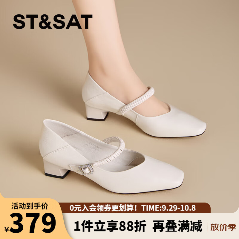 星期六时尚英伦风丁字扣带女鞋2025秋季新款百搭通勤女单鞋MTSSD3111WQ6 白色 35