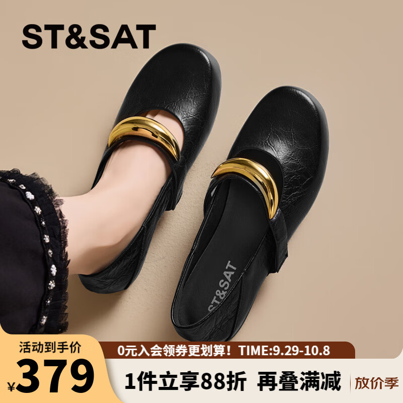 星期六时尚圆头女鞋2025夏季新款百搭英伦风单鞋MTSSD2111WKU 黑色 37