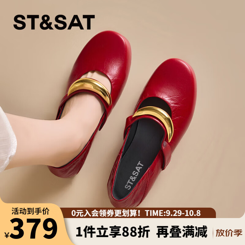 星期六时尚圆头女鞋2025夏季新款百搭英伦风单鞋MTSSD2111WKU 红色 35