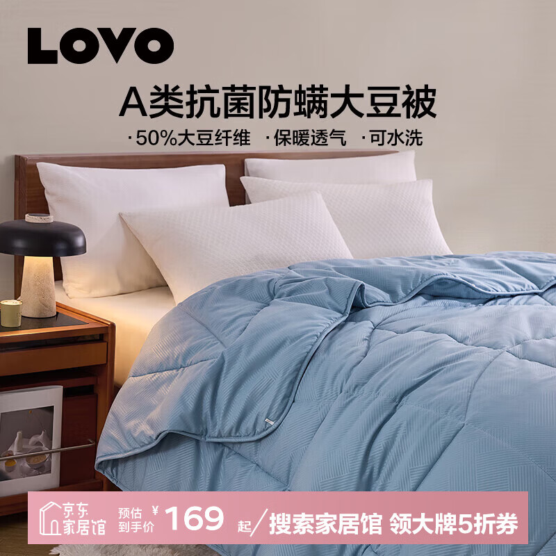 LOVO罗莱生活 被子50%大豆春秋被抗菌防螨单双人秋冬季加厚保暖被芯 【50%大豆+A类+抗菌防螨】蓝 200*230cm 春秋被