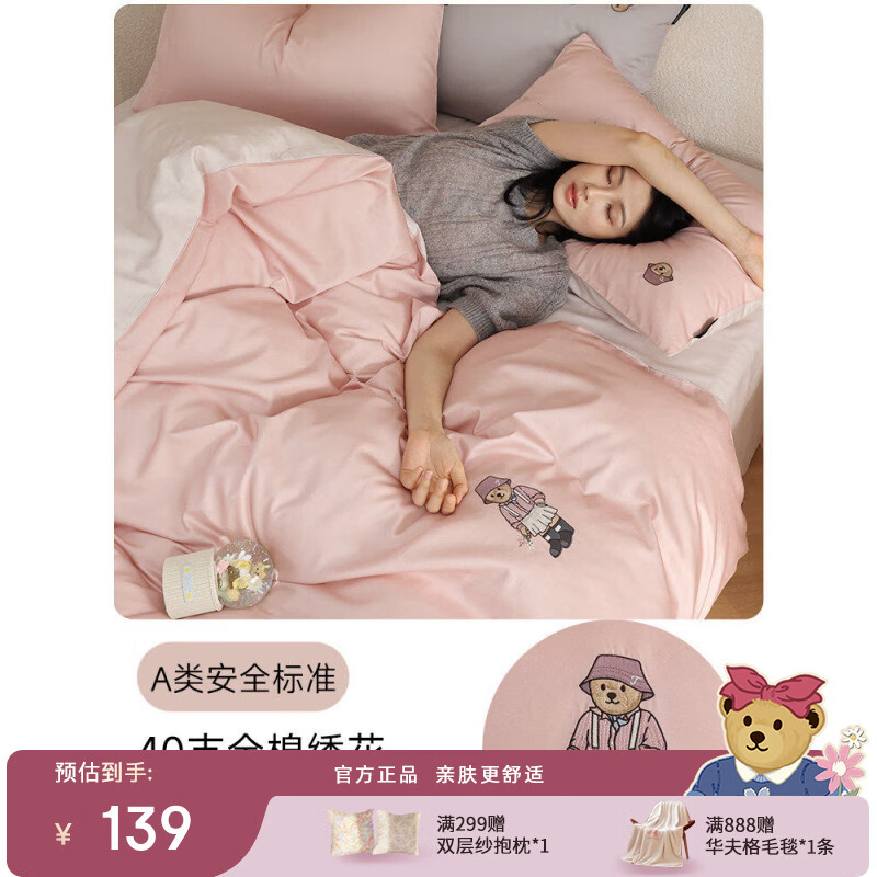 Teenie Weenie小熊A类全棉被套单件100%纯棉四季简约双人被罩学院风 小熊与自然系列-粉色 被套单件:150x200cm【适用150*200cm被芯】