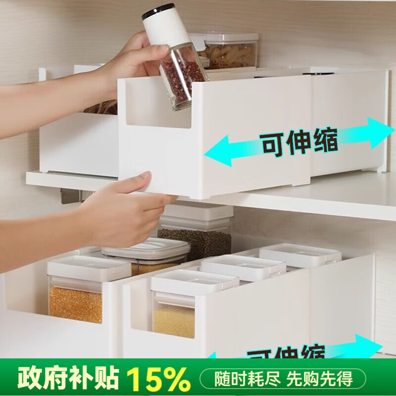 吱凡日本橱柜收纳盒抽屉式可伸缩桌面零食杂物整理盒深柜直角储物盒子 纵向伸缩20cm 4个装
