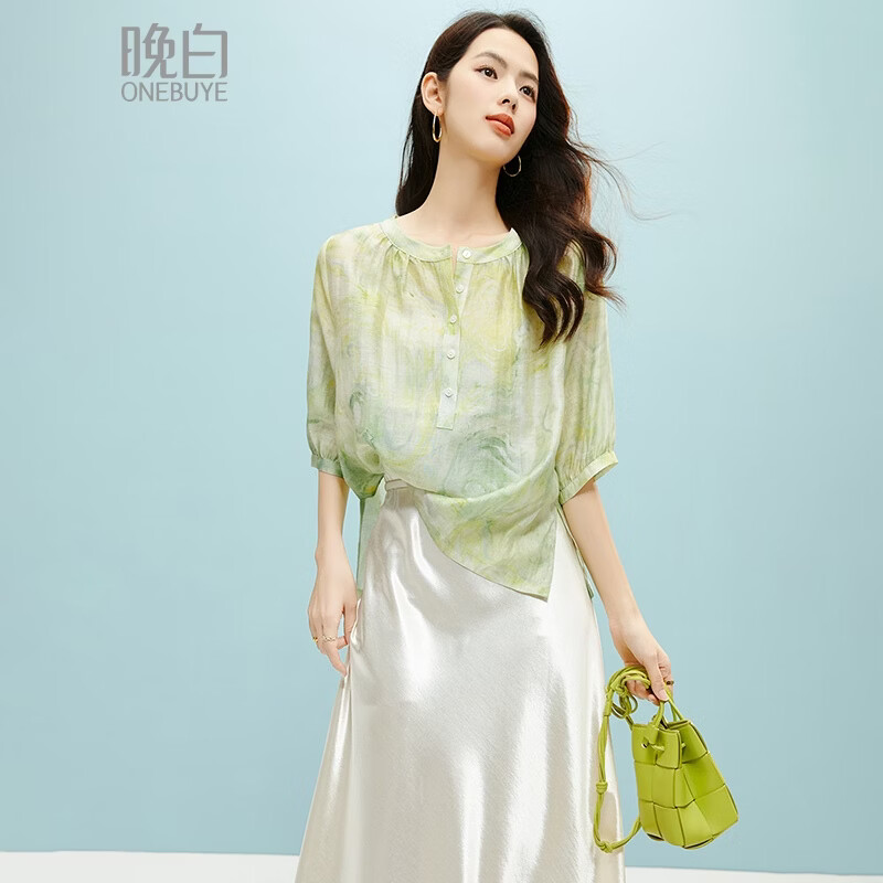 晚白【新品】2026年春款时尚亲肤莱赛尔上衣轻薄显白宽松舒适衬衫女 花色 M