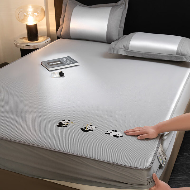 高睿冰丝凉席藤席夏季2026新款学生宿舍单人席子可机洗折叠床笠款 【床笠款】白熊日记-淡雅灰 150cmx200cm凉席+2只枕套