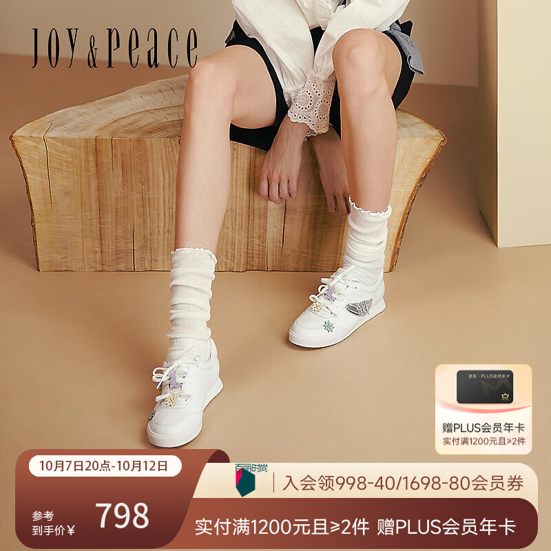 真美诗(Joy&peace)2025秋季新款可爱贴贴甜酷牛皮小白鞋JR821CM5 米色 37