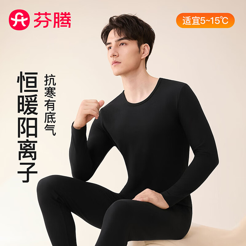 芬腾保暖内衣男2025恒暖阳离子柔和磨绒圆领高弹套装打底衣男秋衣秋裤 黑色 2XL