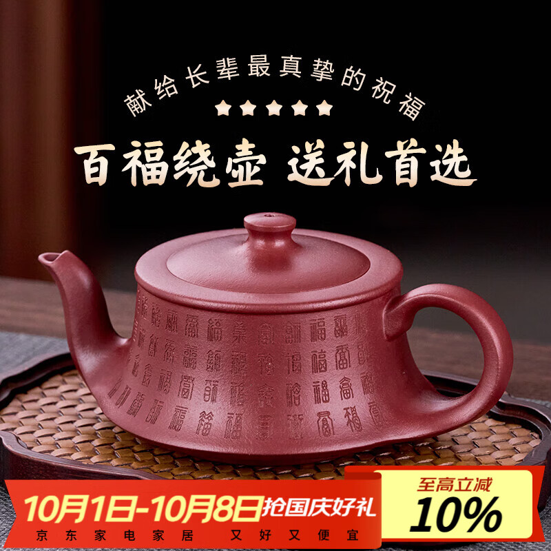 千寿堂紫砂壶宜兴原矿手工曲壶绘送长辈茶具礼盒装 原矿百福壶【礼盒】