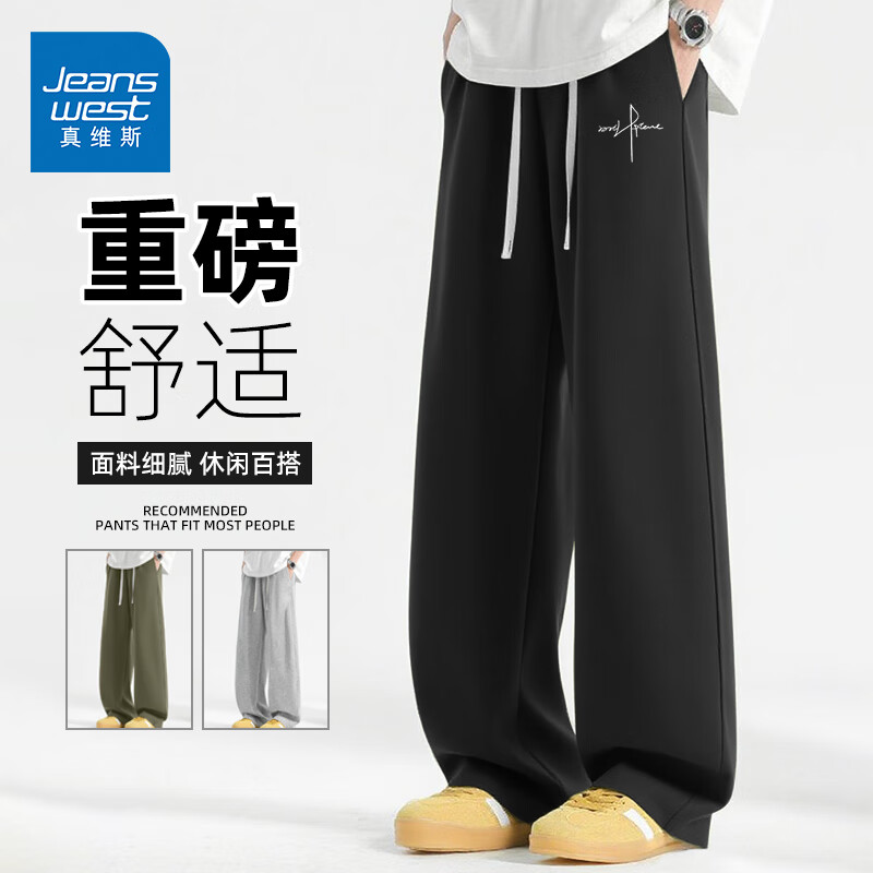 真维斯(Jeanswest)美式休闲裤男款2026秋季新款宽松卫裤垂感阔腿裤青少年运动长裤男 黑色 草书英文白_K 3XL