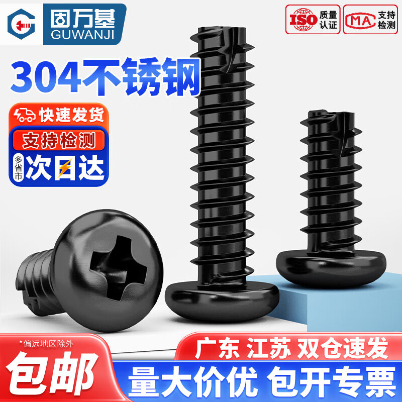 固万基304不锈钢黑色PT十字圆头盘头割尾自攻螺丝钉镀黑锌M2M2.3M3M4M5 M2x4(200个)