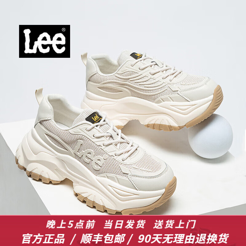 Lee女鞋新款潮流休闲鞋女小个子增高老爹鞋百搭运动鞋时尚舒适鞋子女 米色 38