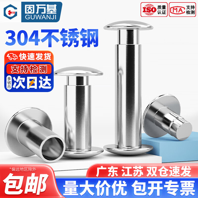 GUWANJI304不锈钢扁圆头对敲子母铆钉公母对铆平头半空心书相册卡紧打钉 M3x4(50套)