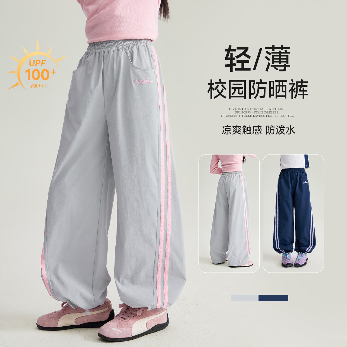 媛媛公主儿童裤子26春新款女童轻薄柔软休闲裤中大童百搭舒适运动裤长裤 浅白灰 140