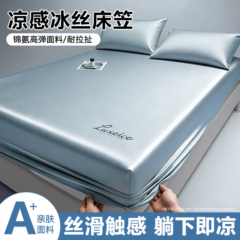 高睿冰丝床笠夏季凉感氨纶锦纶防滑床垫保护罩学生宿舍通用床罩不易皱 浅蓝色【88%锦纶+12%氨纶-加倍凉感丝滑】 150cm*200cm【床笠】