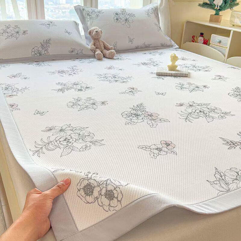 高睿2026夏季新款冰丝豆豆凉席床垫三件套夏天学生宿舍可水洗单人席子 床单款-花影【A类抗菌斜纹凉感豆豆席】 90cmx200cm凉席+1只枕套