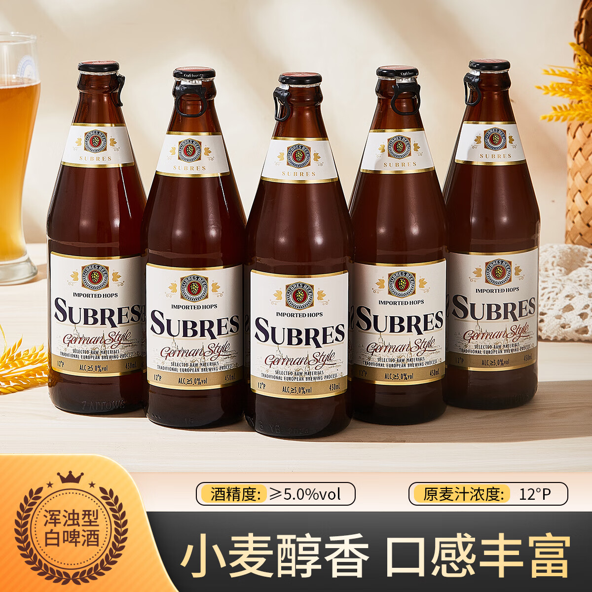 SUBRES【香港品牌】450ml 苏伯雷12° 德式小麦精酿啤酒白啤发西藏新疆 苏伯雷啤酒 450mL 6瓶 精酿