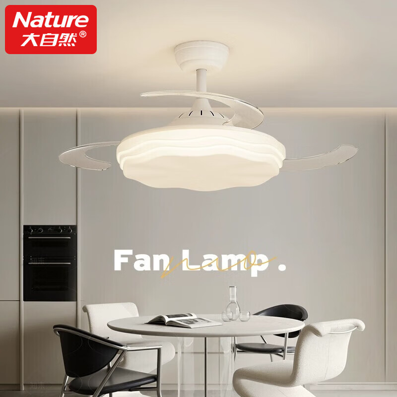 大自然照明2025新款风扇灯餐厅现代简约隐形吸顶灯扇一体静音波浪卧室吊扇灯 42寸直径106cm 风扇吊灯 白色 三色变光