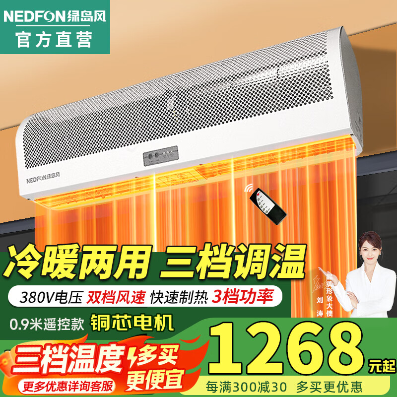 绿岛风(Nedfon) 电热风幕机商用380V遥控款冷暖两用热风幕机三档温度门口暖风机 【三档调温】0.9米遥控款-380V 2.5米门高内使用-遥控款
