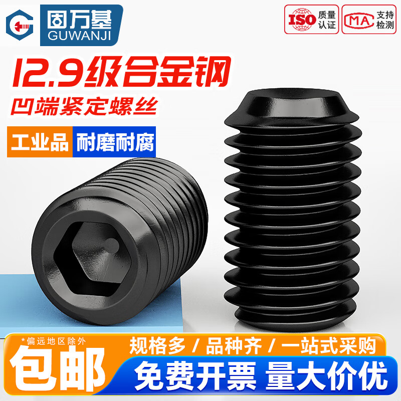 GUWANJI12.9级凹端机米螺钉紧定螺丝GB80内六角无头螺丝基米顶丝 M6 x6(200粒)