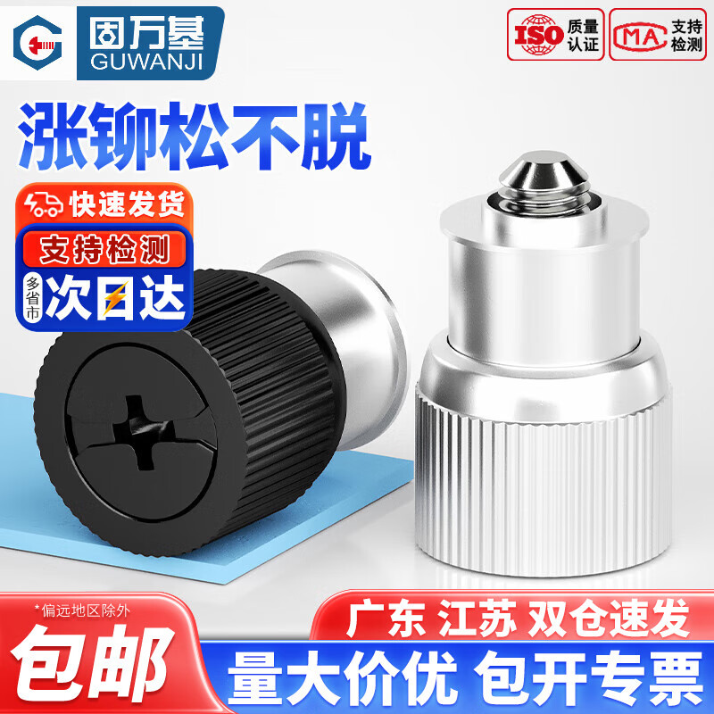 GUWANJI涨铆松不脱弹簧螺钉PF11MF机柜面板组合压铆螺丝紧固钉M3M4M5M6 银色 PF11MF-M3-0[5只]