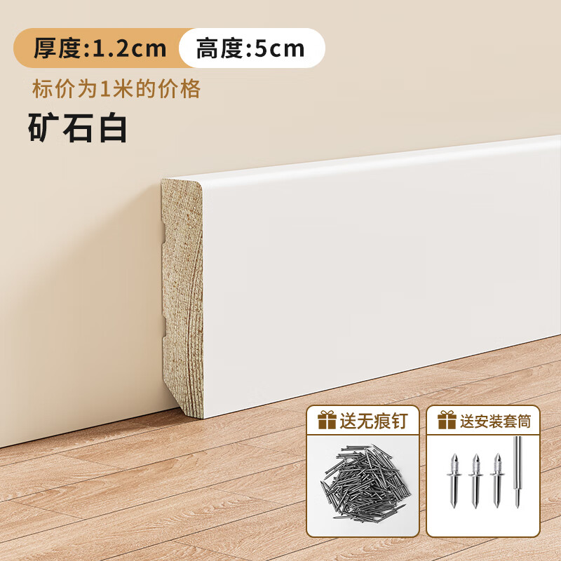 仓藏纯实木踢脚线木质地脚线木纹白色黑色菱花白奶油风免漆贴脚线 高5cm矿石白-送配件