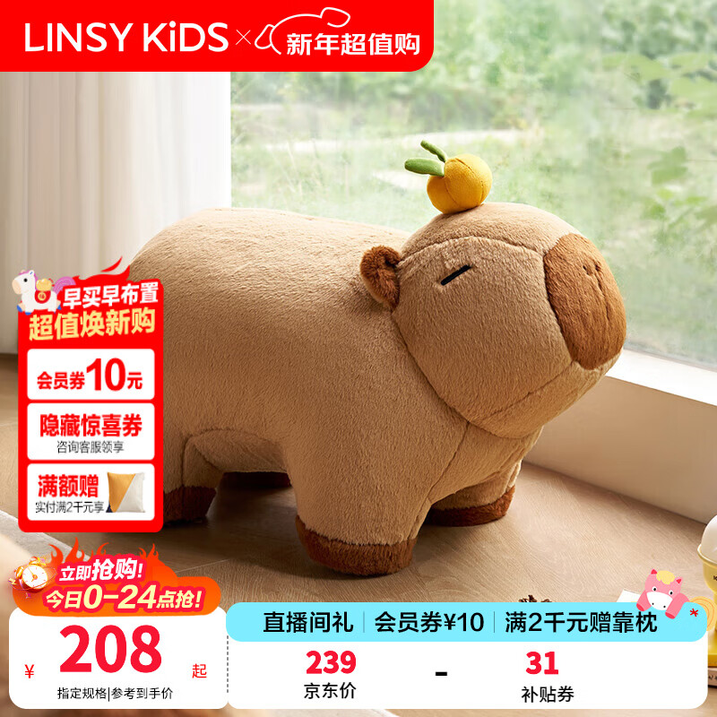 LINSY KIDS小凳子家用矮凳布艺脚踏客厅门口换鞋凳儿童玩具卡皮巴拉TB064 【慵懒棕+围巾】猫抓布脚踏
