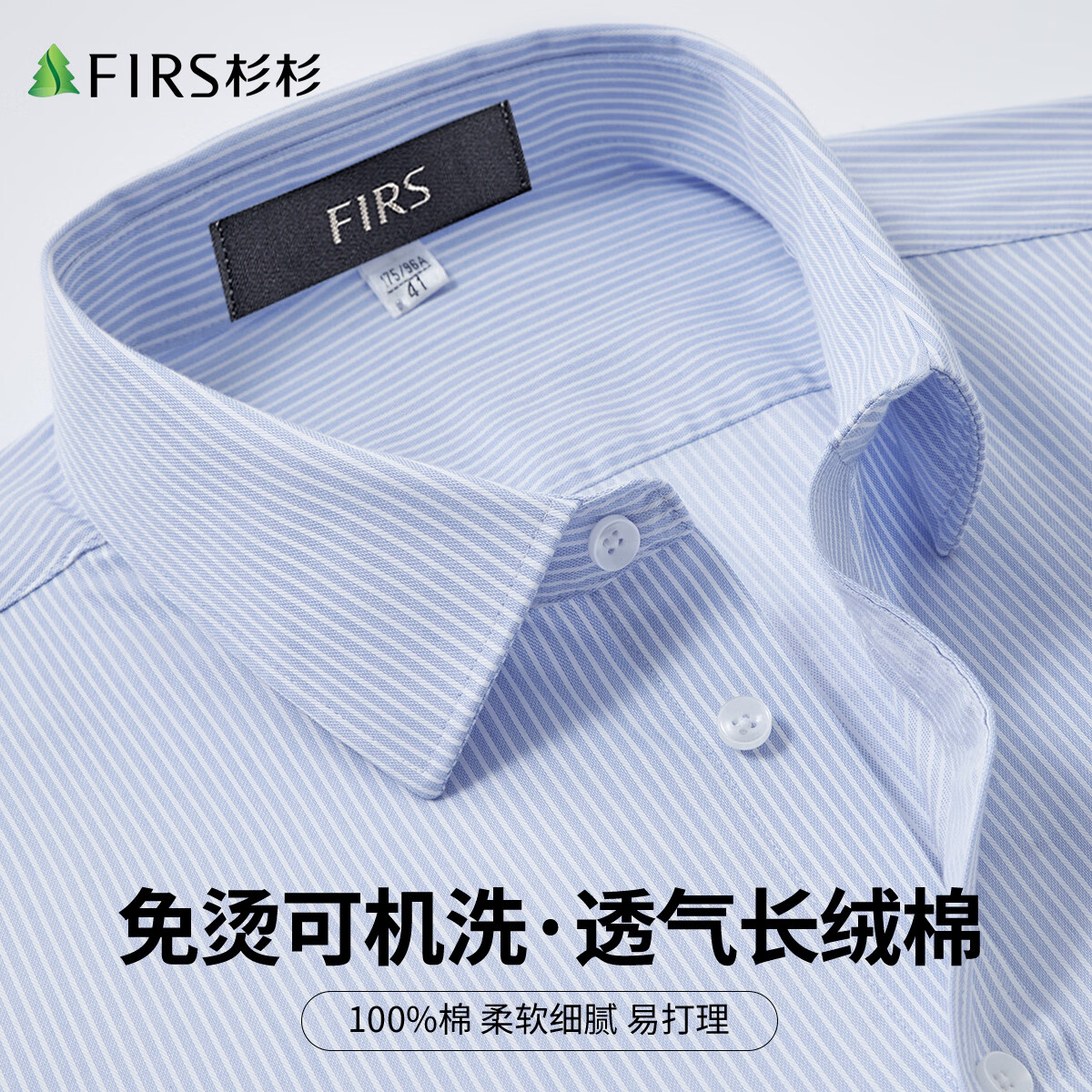 杉杉【亲肤透气易打理】春季新款商务休闲长袖衬衫男 蓝白条 39