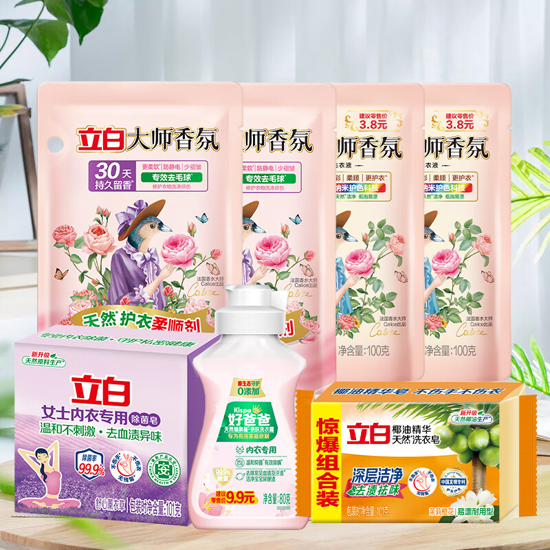 立白大师香氛洗衣液持久留香手洗机洗低泡易漂炫彩柔顺护衣家用防串色 洗衣组合7件套