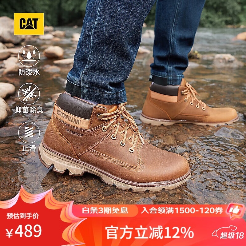 CAT卡特秋冬新款男士户外透气耐磨防水登山鞋经典牛皮工装靴低靴