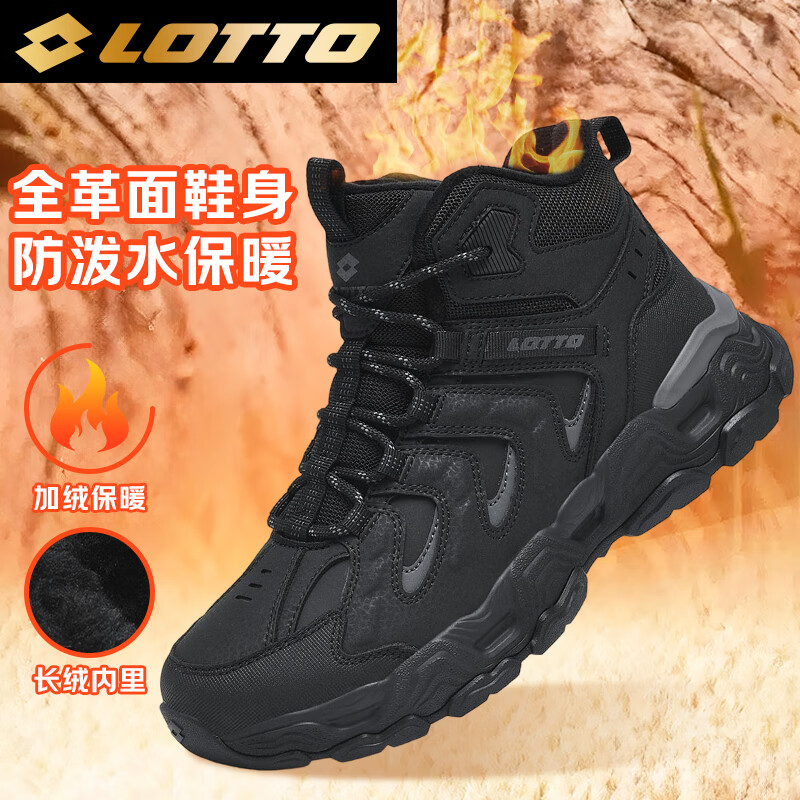 乐途(LOTTO)运动鞋男冬季加绒棉鞋男户外防滑保暖高帮靴子男 5975 黑色 42