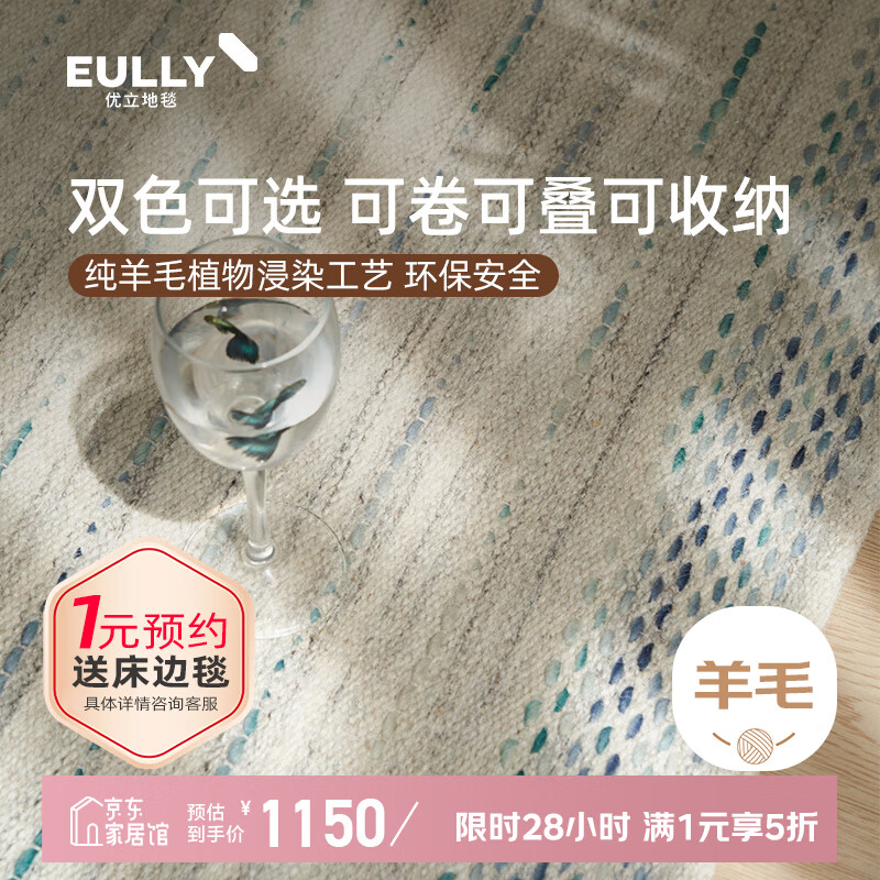 优立地毯线迹丨进口羊毛地毯夏季多巴胺家用中古风地毯客厅-蓝屿200x290cm