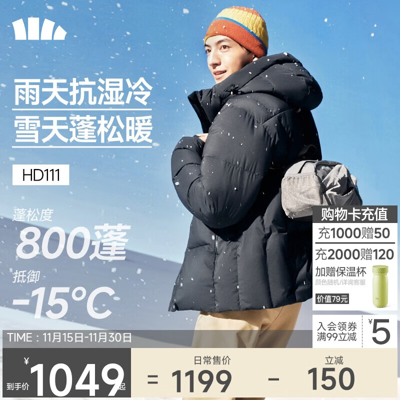 蕉下(beneunder)男士拒水羽绒服保暖户外防风防水可机洗连帽外套HD111漫暮黑L
