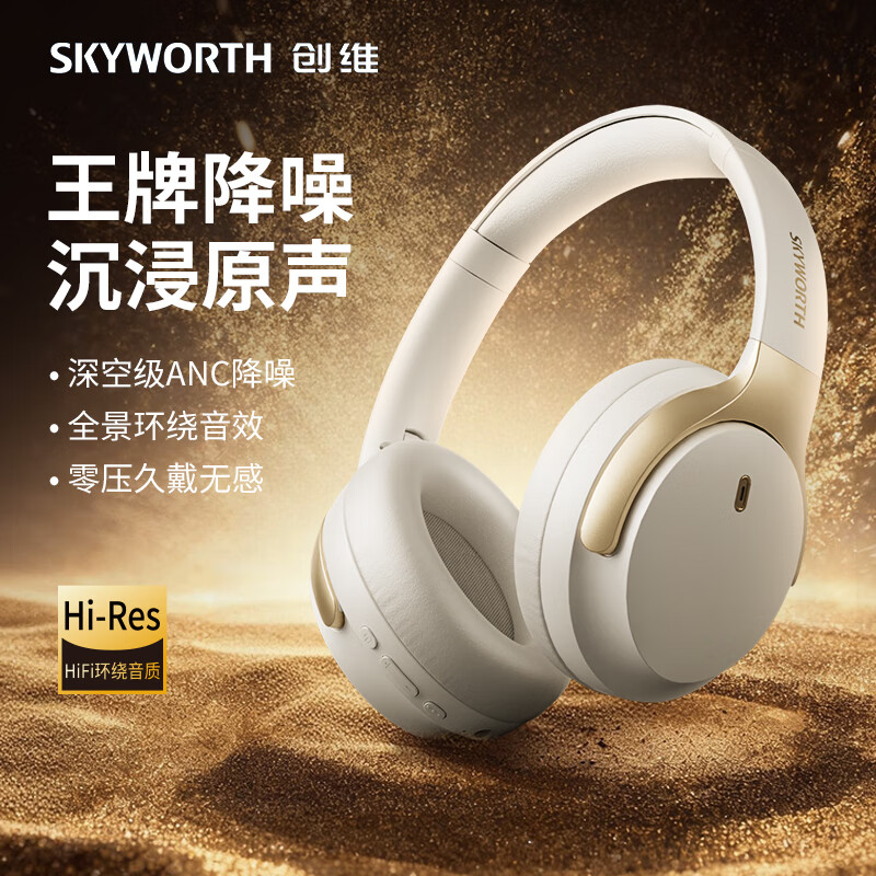 创维(Skyworth)H1 Free 白色 蓝牙耳机头戴式主动降噪2025新款无线有线游戏音乐耳机不伤耳朵睡觉隔音新年礼物
