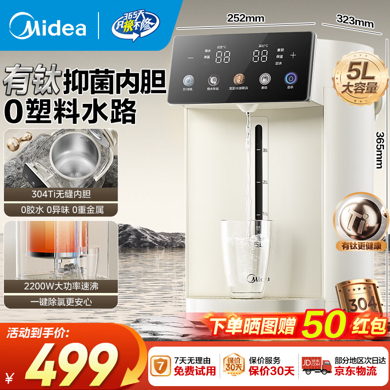 美的(Midea)钛电热水瓶 5L升大容量保温除氯电水瓶 电热水壶饮水机 家用钛烧水壶保温一体全自动恒温电热水壶 5L 【有钛升级款】316L不锈钢