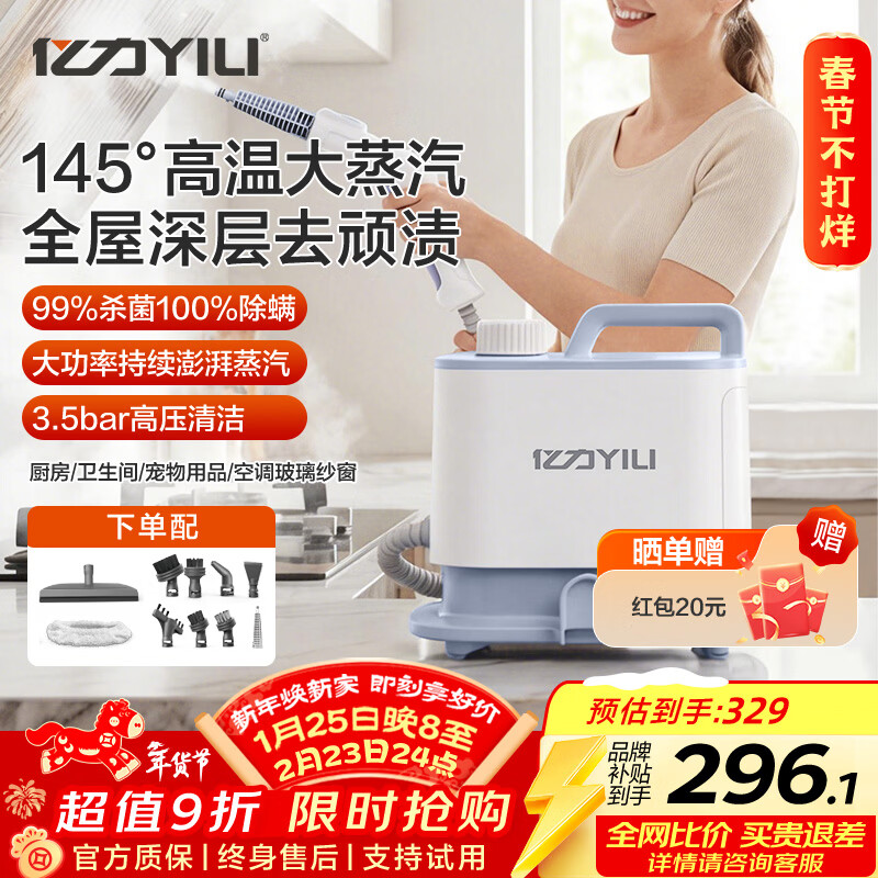 亿力145°高温高压多功能蒸汽清洁机蒸汽拖把拖地消毒机全屋油烟机厨房电器空调地毯家政清洁神器-1003 白色