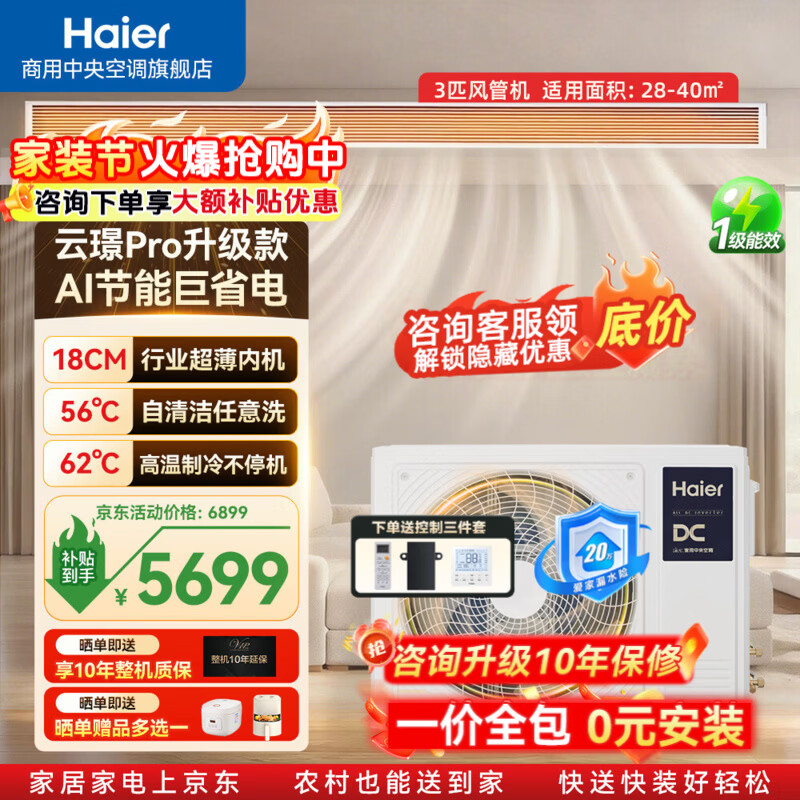 海尔【立减15%】中央空调风管机云璟pro/云舒3匹一拖一客厅家用嵌入全屋智联全直流变频一级能效 3匹 【线下同款】云璟Pro升级款 包安装