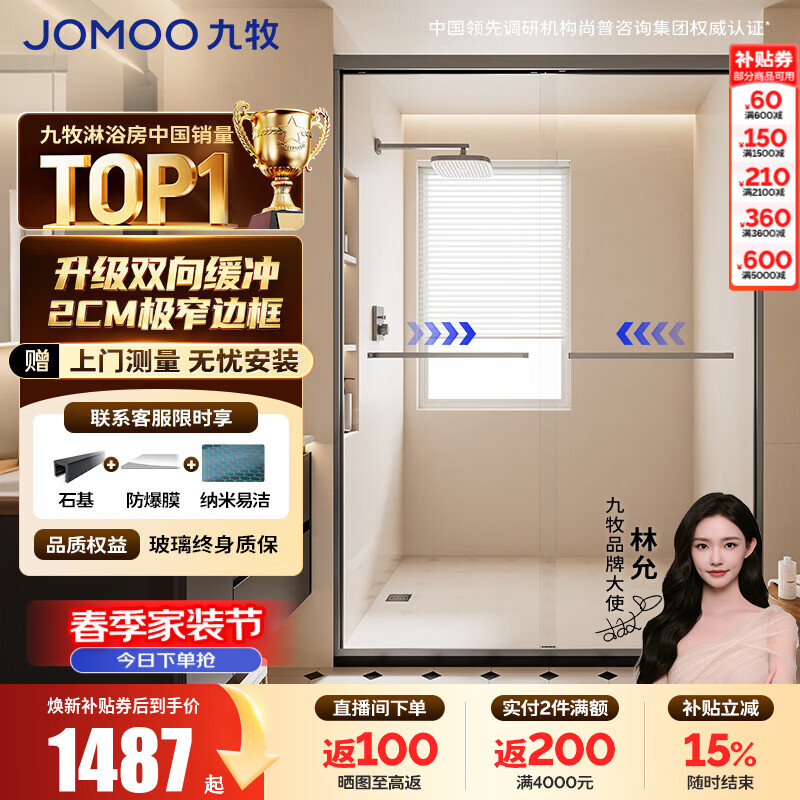 九牧(JOMOO)【定制】极简一字型不锈钢整体淋浴房一体式洗澡房淋浴隔断E22S 【重磅新品】枪灰 【阻尼缓冲】1.5m-1.59m 高2.0m