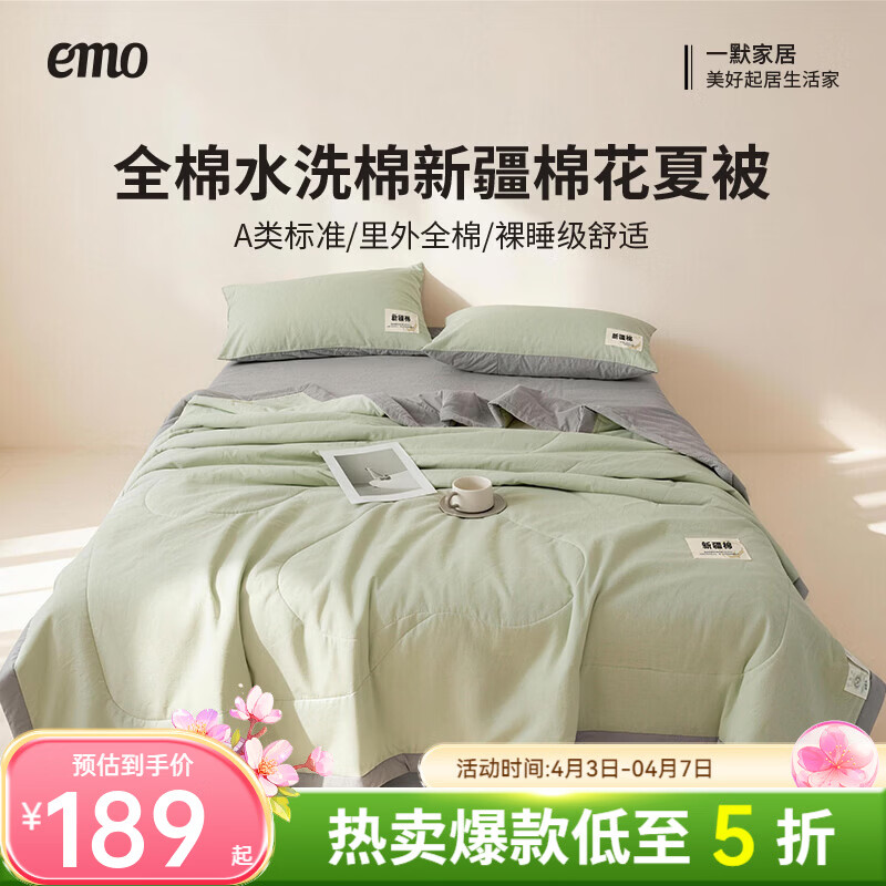 一默棉花被纯棉新疆棉花抗菌夏被2026春夏薄被子A类全棉空调被夏凉被 全棉烫画-清新绿 200x230cm