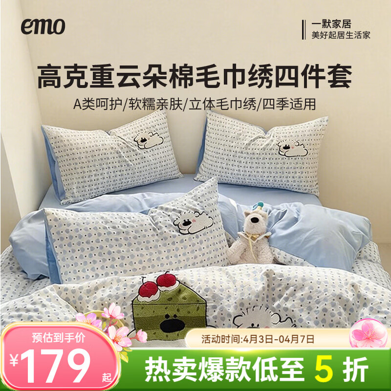 一默四件套高克重云朵棉2026被套枕套床单床笠家纺单双人毛巾绣四件套 抹茶蛋糕狗 2.0m 床单款 (被套200*230cm) 四件套