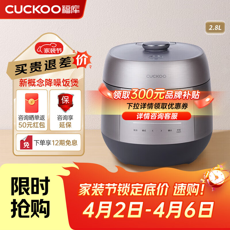 福库(CUCKOO)电饭煲韩国原装进口家用多功能电饭锅真高压力高火力ih三维立体加热智能语音双压不粘内胆不粘锅 PHTR0611FWS 2.8L