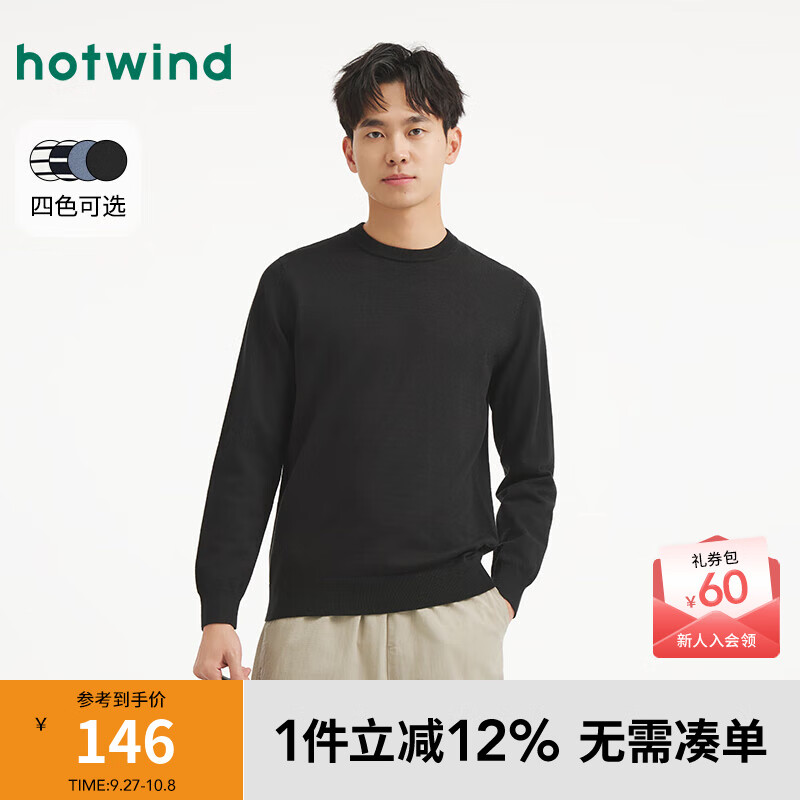 热风男士打底针织衫2025年秋季新款纯色基础款圆领针织衫内搭上衣 01黑色 S